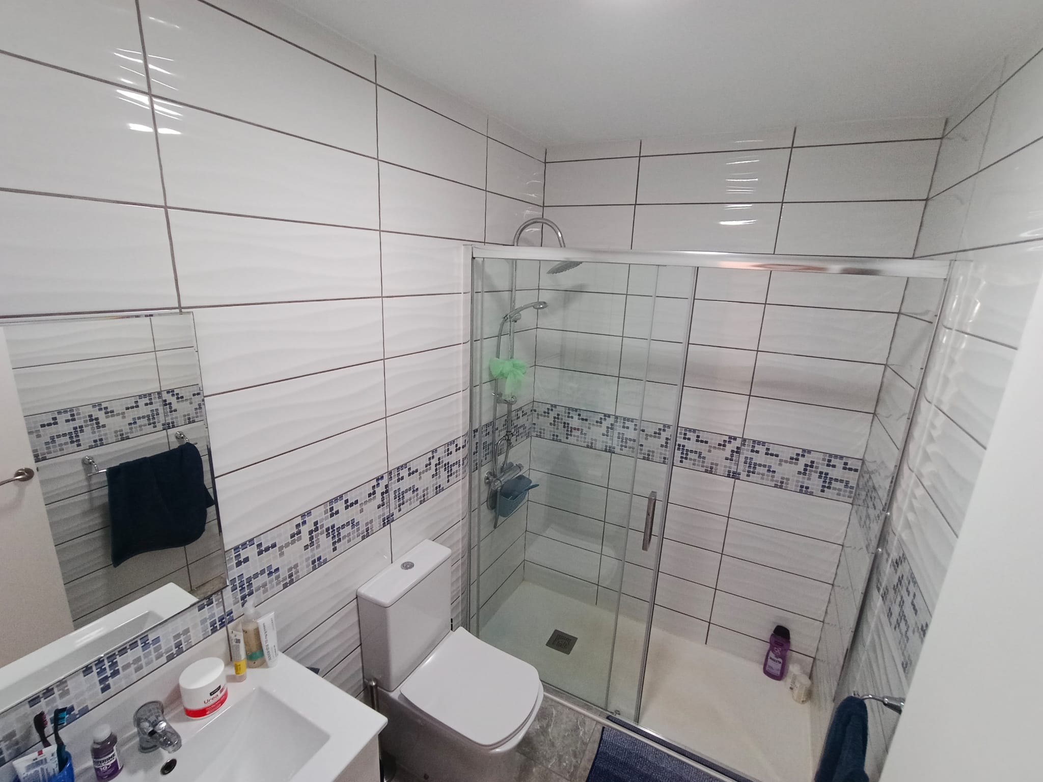 Inside, you’ll find two bedrooms, one full bathroom plus a guest toilet, and a bright living space. The home comes furnished, with practical details such as built-in wardrobes and a separate storage area.